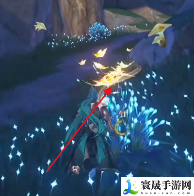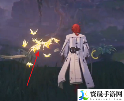 3、山坡的右上角可以找到第一处木头金色蝴蝶。