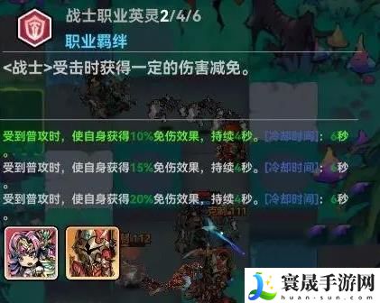 战士羁绊效果总览:受到普攻时,使自身获得10%免伤效果,持续4秒,