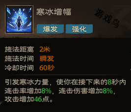 效果:引发寒冰力量,使你在接下来的8秒内连击率增加8%,连击伤害增加8%攻击增加46点。