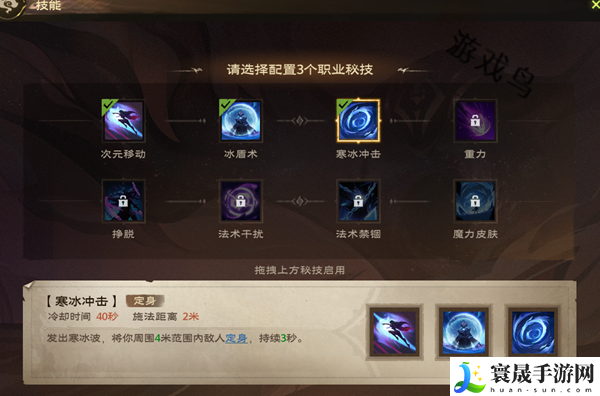 效果:发出寒冰波,将你周围4米范围内敌人定身,持续3秒。