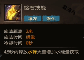 铭石状态:4.5秒内释放水弹大量增加水能量获取