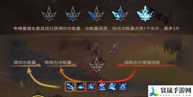 每次释放寒冰地刺可将最多30点水能量转换为冰能量。