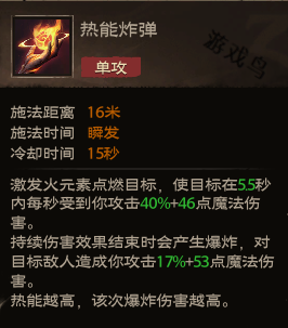 量谱能量:热能炸弹期间获得热能,热能炸弹引爆按热能増伤