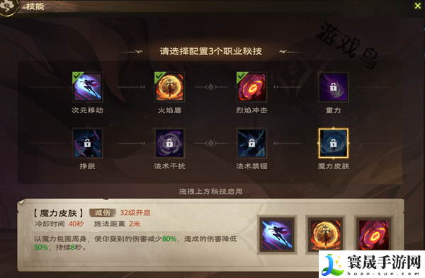 效果:以魔力包围周身,使你受到的伤害减少80%,造成的伤害降低50%,持续8秒。