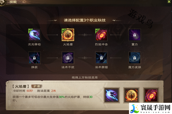 效果:获得一个最多可吸收你最大生命值30%的火焰护盾,持续30秒