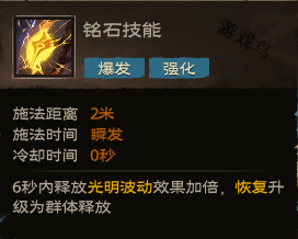 效果:6秒内释放光明波动效果加倍,恢复升级为群体释放。