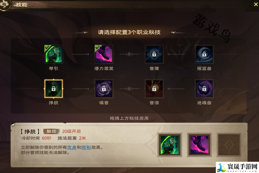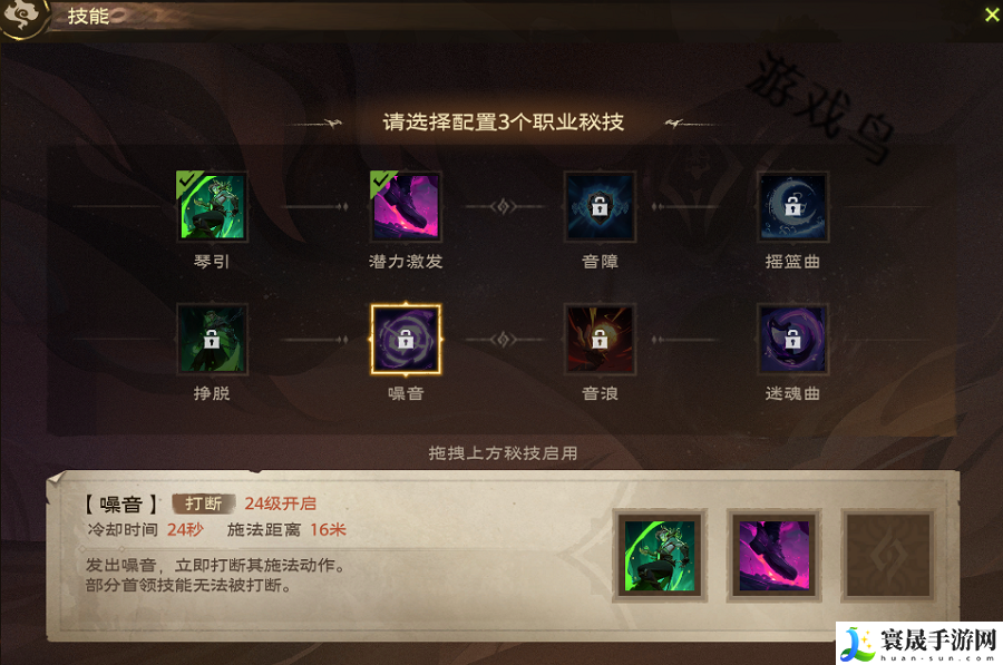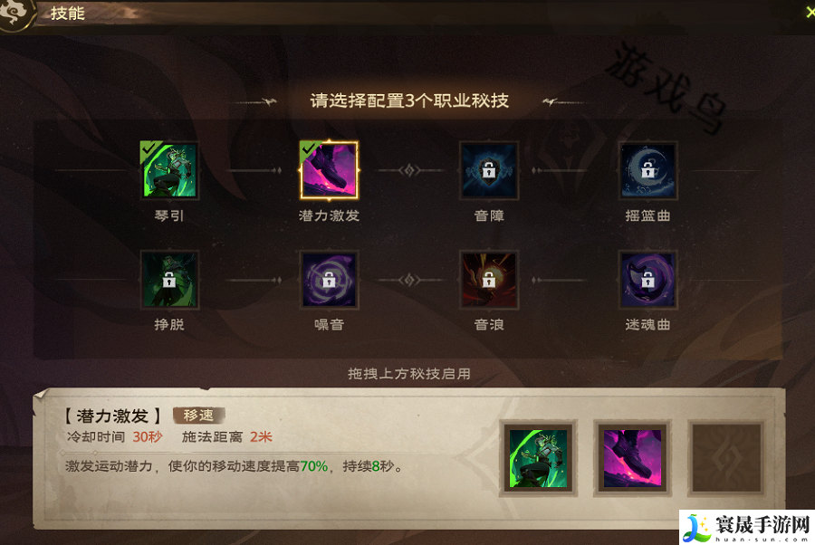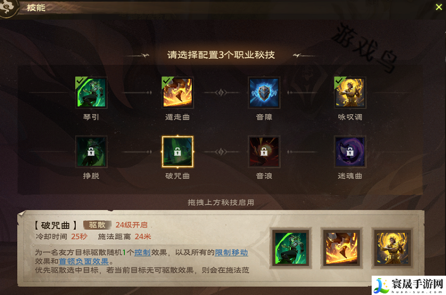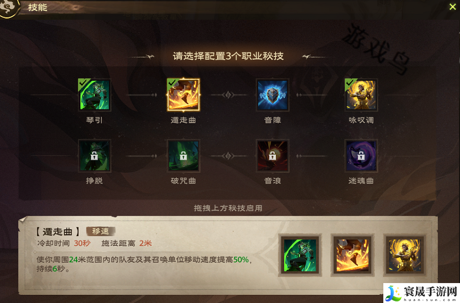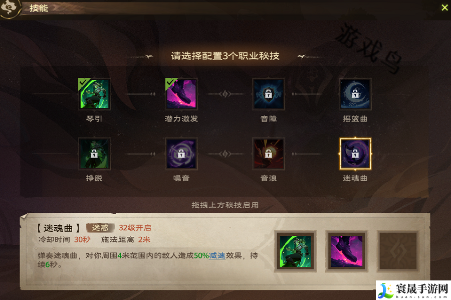 效果:弹奏迷魂曲,对你周围4米范围内的敌人造成50%减速效果,持续6秒。