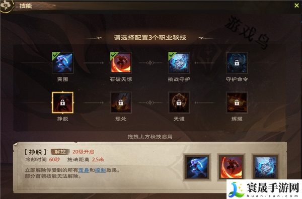 效果:立即解除你受到的所有定身和控制效果。部分首领技能无法解除。