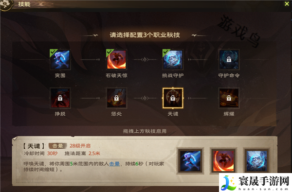 效果:呼唤天谴,将你周围5米范围内的敌人击晕,持续6秒(对玩家持续时间缩短)。