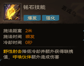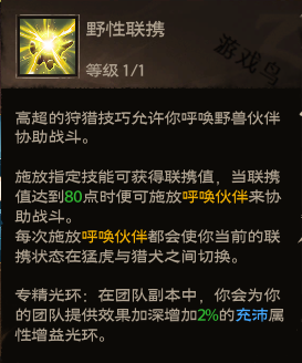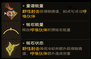 铭石状态:野性射击降低冷却并额外获得联携值,呼唤伙伴额外造成伤害