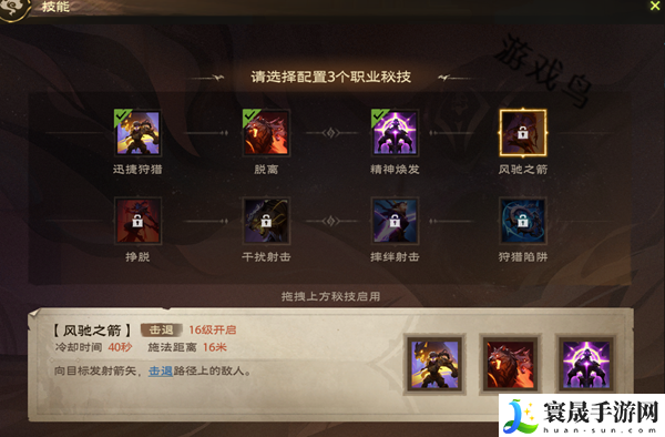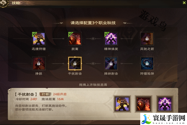 效果:向目标射出箭矢,打断其施法动作。部分首领技能无法被打断。