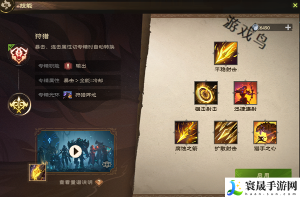 效果:指引箭雨攻击指定区域,在4秒内每秒对区域中的敌人造成你攻击的10%+30点物理伤害,每额外命中一个目标可提高本次100%的伤害,命中人数达到5时,伤害不再提升。