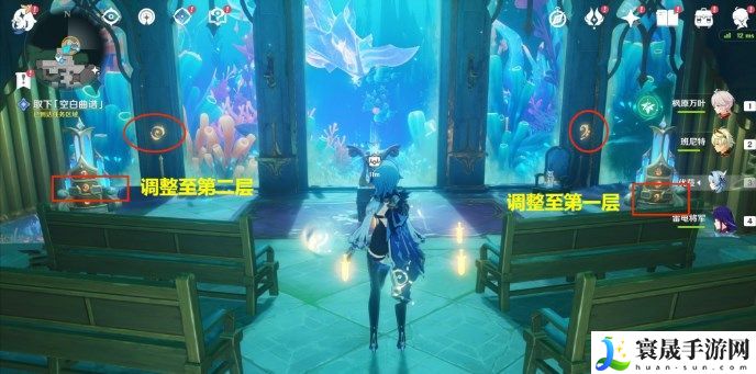 10.然后我们来到如图所示的房间。我们需要利用E的表现功能来调整两侧墙壁的图案,如图所示。