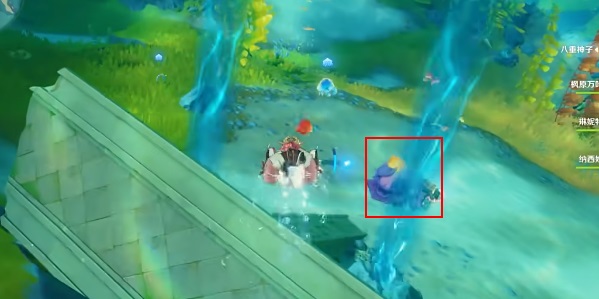2、然后潜入水中找到一个紫色的寄居蟹魔物;