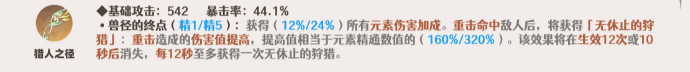可以让提纳里的重击伤害增加,并且可以根据队伍角色的元素类型不同来提供提纳里的不同强化加成,还可以让提纳里获得伤害的加成。