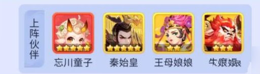 辅助伙伴(5星忘川童子、王母娘娘、姜子牙)可着重增益牛魔王和秦始皇。