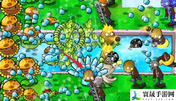 5、可以在血量较厚的僵尸前面放置一个雪花寒冰菇。