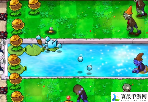 2、前期主要是收集阳光,玩家需要先种植一列的阳光向日葵和豌豆睡莲。