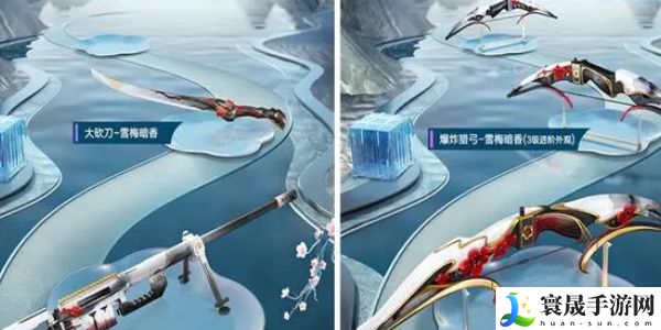 1、这次的军需转盘中的皮肤分别是C位粉色等级的套装名叫雪梅暗香,紫色等级的套装分别叫竹华凝韵、银杏天影。