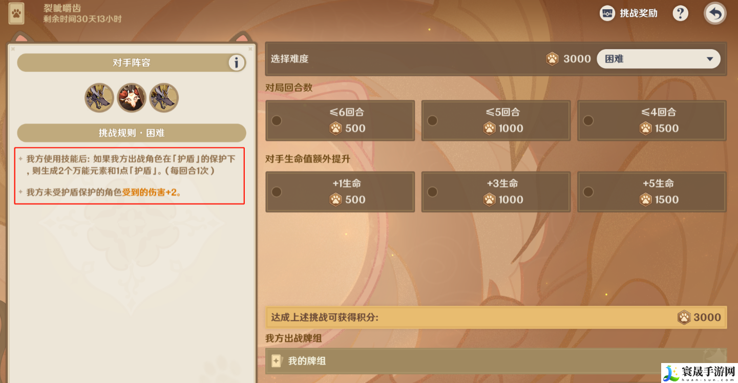 行动牌参考:推荐带双岩共鸣牌+岩与契约,其它的带对应的天赋牌和一些能加万能骰子牌(例如:派蒙、最好的伙伴)来优化手感。