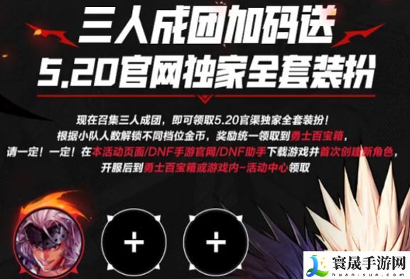 1、勇士们与两位好友组队,三人成团,即可获得5.20官网独家全套装扮:武器装扮+光环+头像框+聊天框4件套。