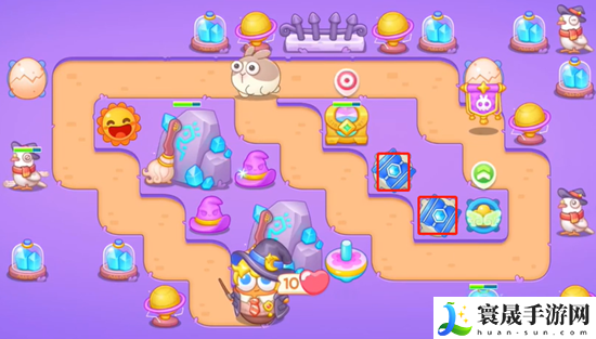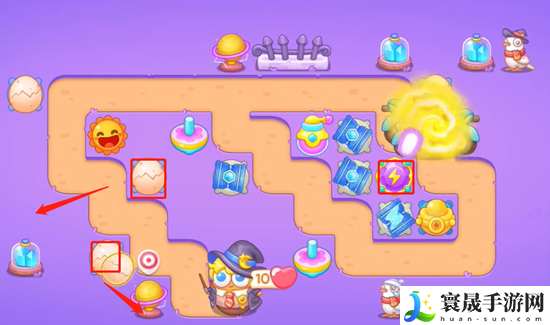 4、最后一遍增加线上的炮台数量强化伤害能力,也要注意把场上所有的道具全部清理干净拿到全清,完成通关。