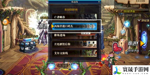 1、首先进入游戏来到赛丽亚房间以后,向左移动进入传送门,选择“西海岸港口码头”。