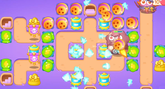 3、之后把剩下的道具全部打掉拿到全清,出口可以放置便便减速缓解对线压力,后面我们主要放保龄球。