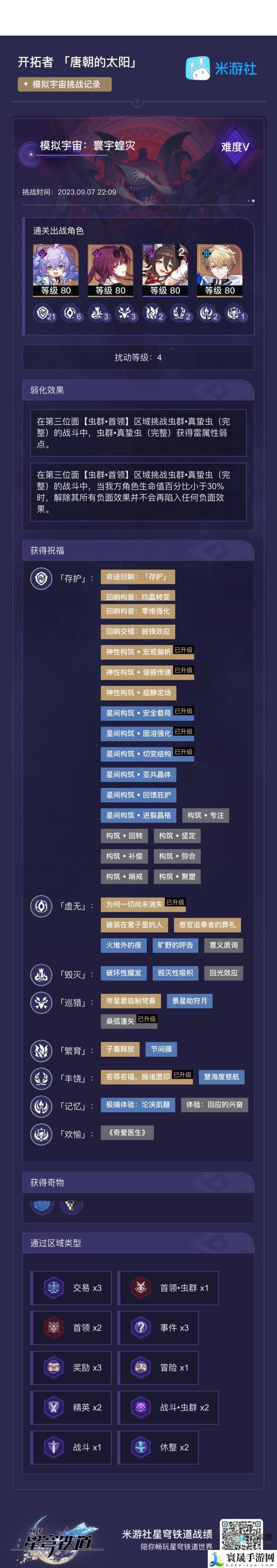 3、战略:靠存护的机制狠狠多拿祝福,主要拿存护里面和反震有关的几个,其余比较好的有虚无各个祝福、毁灭的伤害分摊和一次复活、巡猎的再动、各个命途里和提高效果抵抗以及解控相关的祝福都可以。
