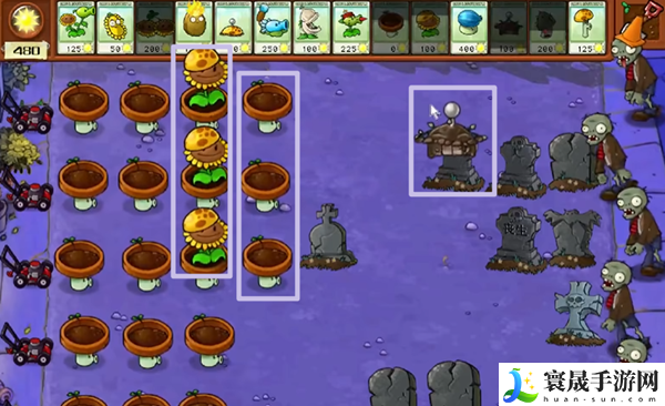 2、阳光向日葵和小盆菇,哪个cd好了就放哪个,速度越快越好,这样我们前期的发育就会很好。