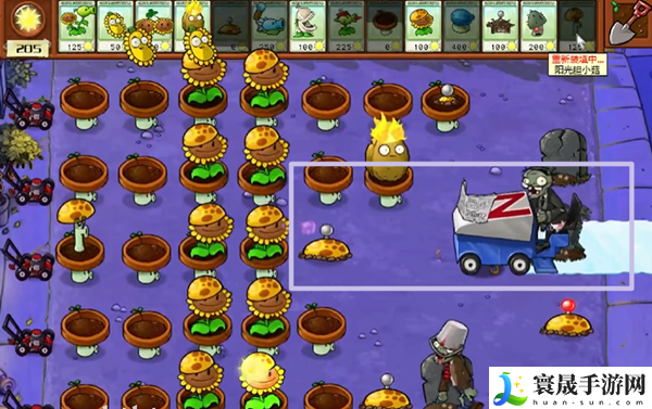 4、雪橇僵尸的处理方法是用土豆雷或者大蒜花,如果阳光充足的话,我们也可以使用向日葵炸弹。