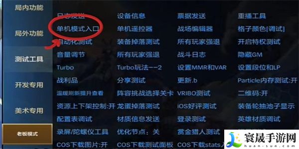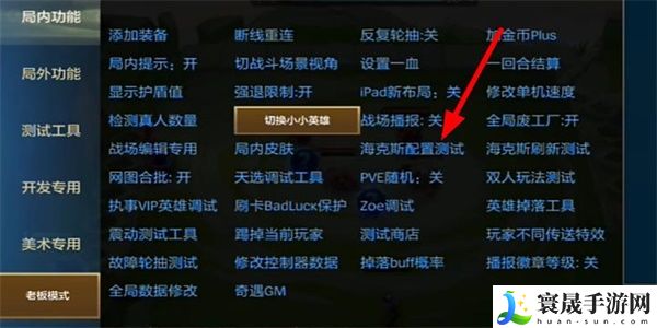 6、继续点击【老板模式】,在此页面点击【海克斯配置测试】。