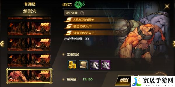 分析:本关对于练度较低的玩家会略有难度,因为关卡中有岩浆地区,进入后持续跌落血量,对于走位较差的玩家常常会一不小心耗光血量。
