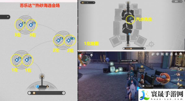 1、在地图【苏乐达™热砂海选会场】的6个小地图中都有一个【汽水先生】(地图上有图标显示),先分别去和6个【汽水先生】对话后,即可解锁6个小地图中的6个隐藏挑战,也就是会解锁【海选特快】右下角的【盛会百科】;