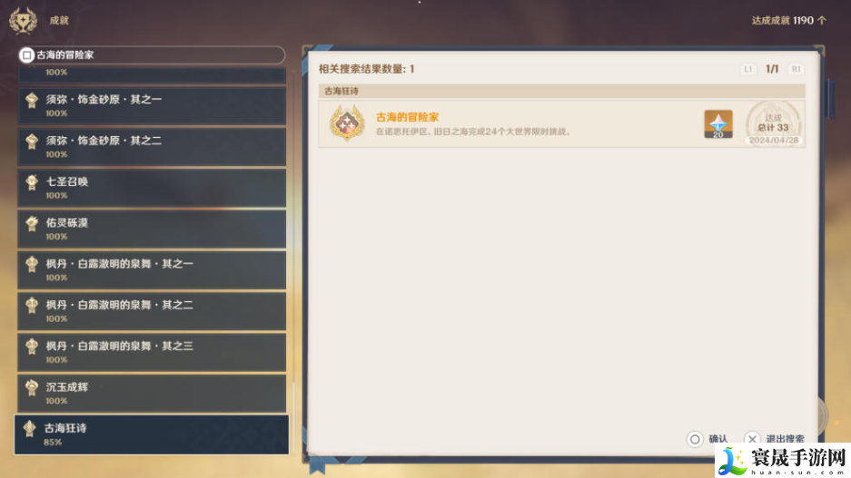 枫丹4.6共有35个「限时挑战」,10和26号不计入成就数,完成33个限时挑战即可达成成就《古海的冒险家》。