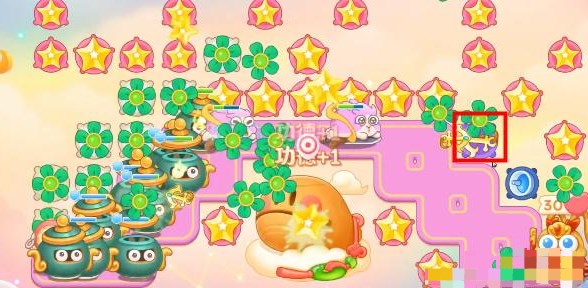 7、 遇到粉色兔子移动速度快的,可以选择在下图位置建造一个船锚,后续继续补强就能轻松通过保卫萝卜4周赛8.22。