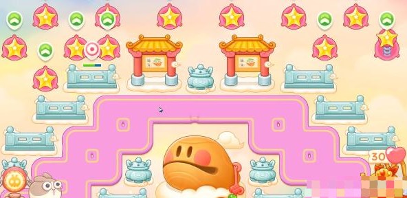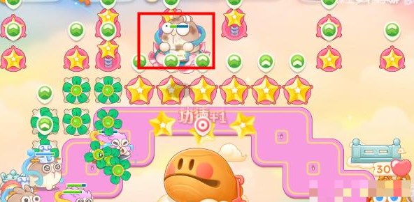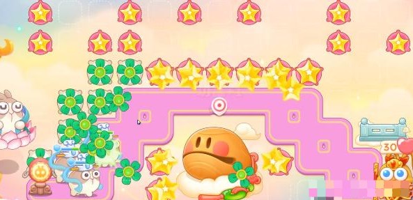 1、进入关卡以后,在顶部你会看到一排星星炮塔,我们先在左侧额外建造两个星星用来攻击障碍物。