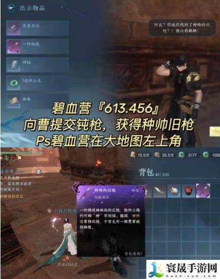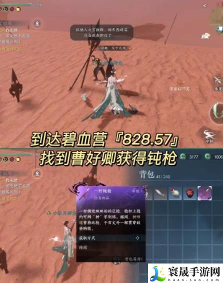 1、到达碧血营『828.57』找到曹好卿获得一杆钝枪