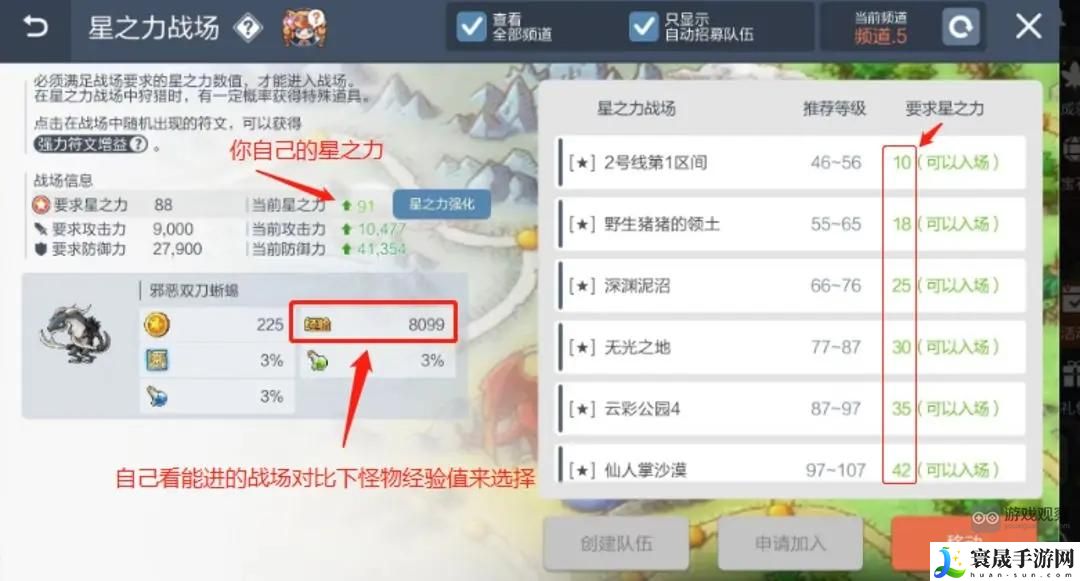 1、星之力战场挂机的前提是你得找到适合自己且保证自己生命值安全的前提下的战场!