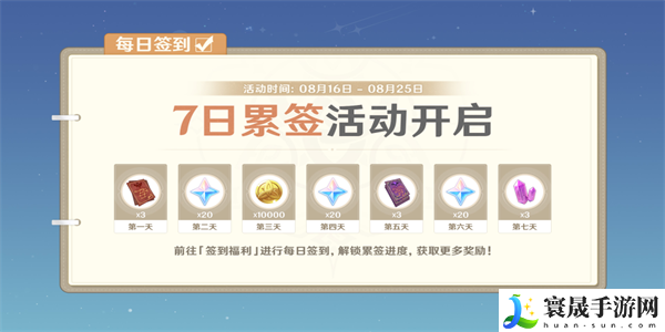 1、活动期间,在米游社进行签到福利完成每日签到,可额外获得对应累计签到天数的奖励。