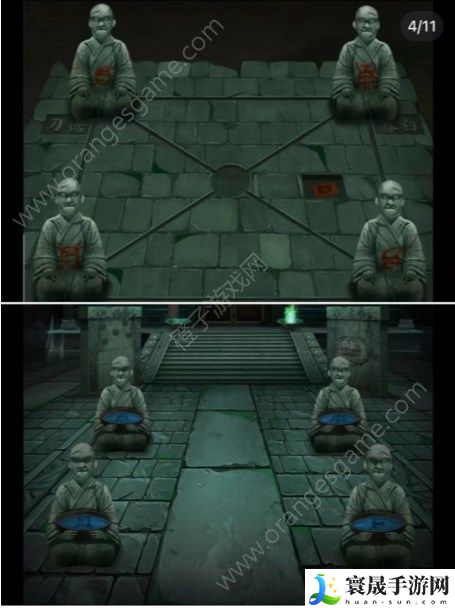 7.左边石碑跟随眼睛:先点一个然后出现第二个点第二个出现第三个点第三个依次…,得到铜钱钥匙和纸元宝。