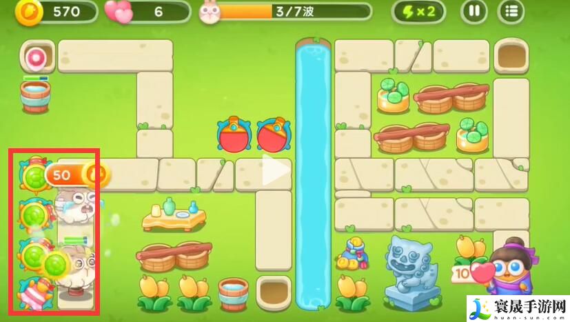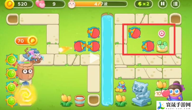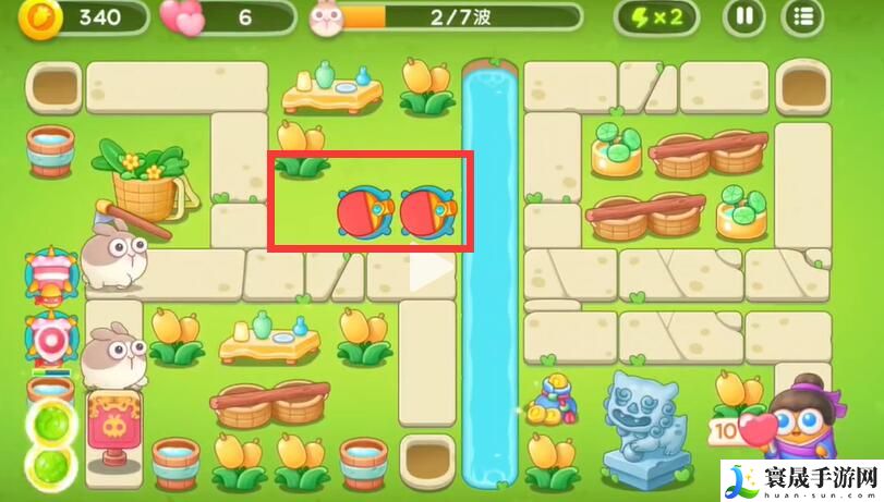2、之后还是在出口这里放置一些乌龟将旁边的兔子全部打伤。