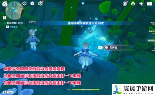 2、接着我们吸收异色膨膨兽的能力后激活海螺,按照艾伊丝教我们的信号顺序发送即可
