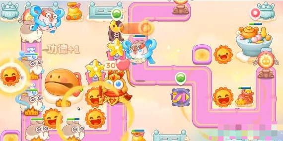4、第三波开始后兔子会从两个地方刷新,因此你需要在中央道路上建造星星、月亮、太阳。