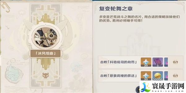 原神复变轮舞之章需要我们完成两个击败,一个是科培疏司的劫罚还有一个是歌裴莉娅的葬送,想要完成这两个任务我们需要在地图的标记处先与NPC完成对话,然后在指定的目的地开始任务!