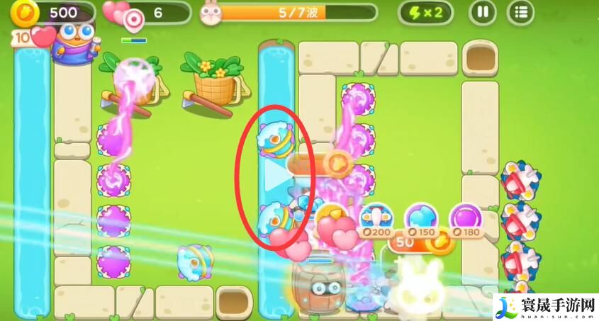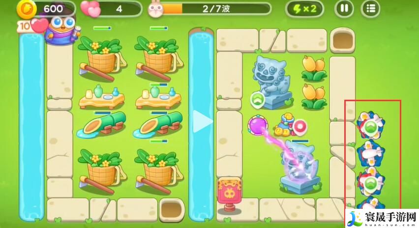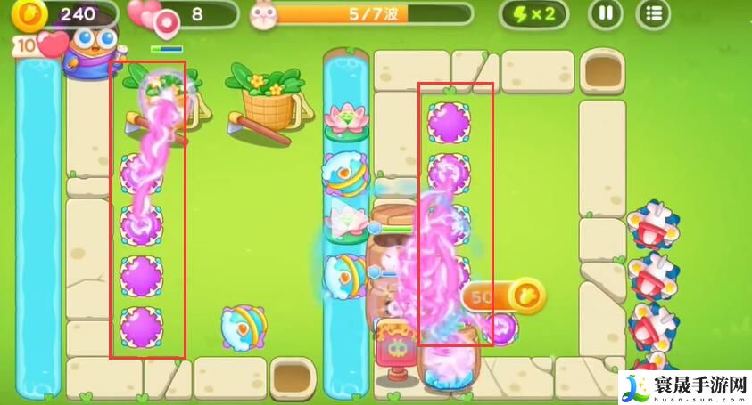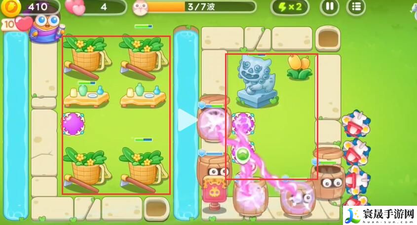 6、中间的荷叶上放上雪球塔将附近路过的兔子全部减速造成更多的伤害。