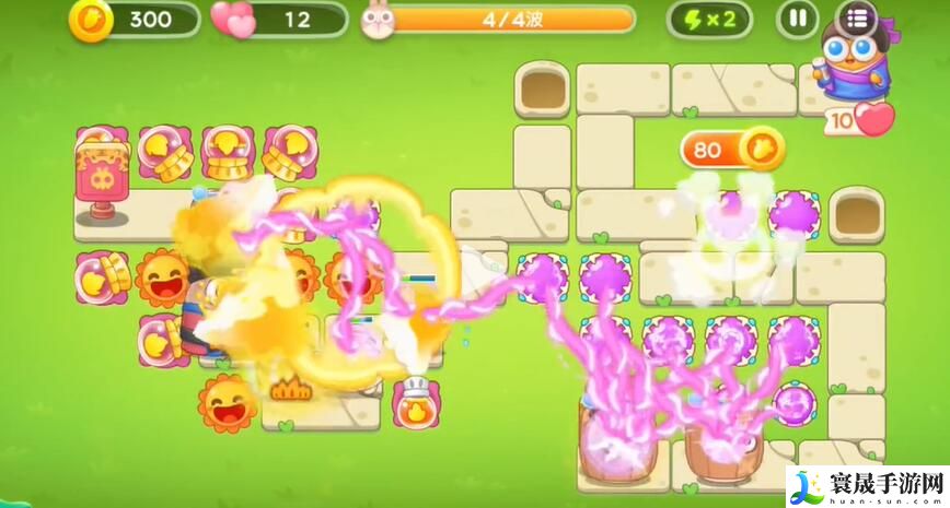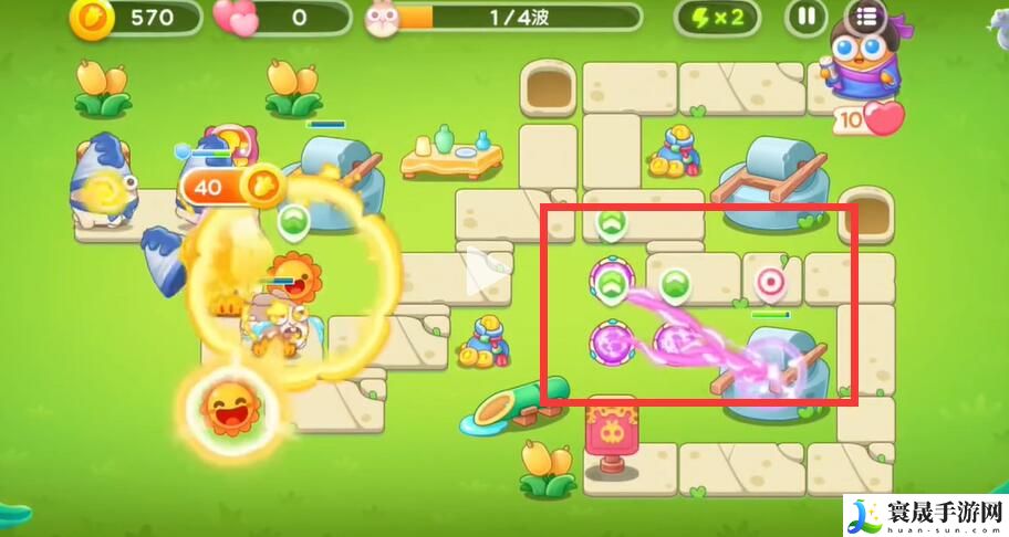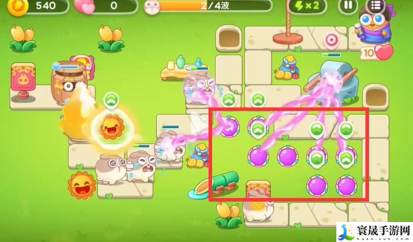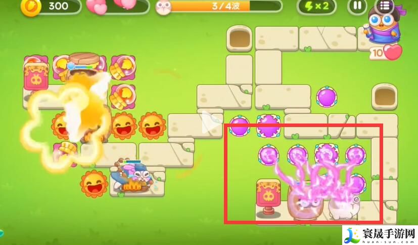 5、在第三波时,下面的出口会出现兔子,魔法球就可以自动的对兔子进行攻击。