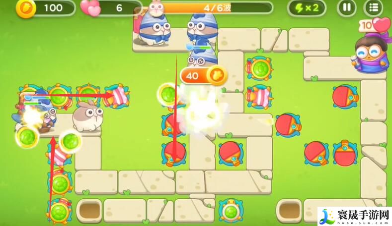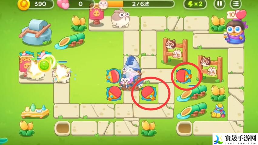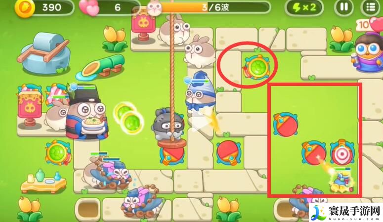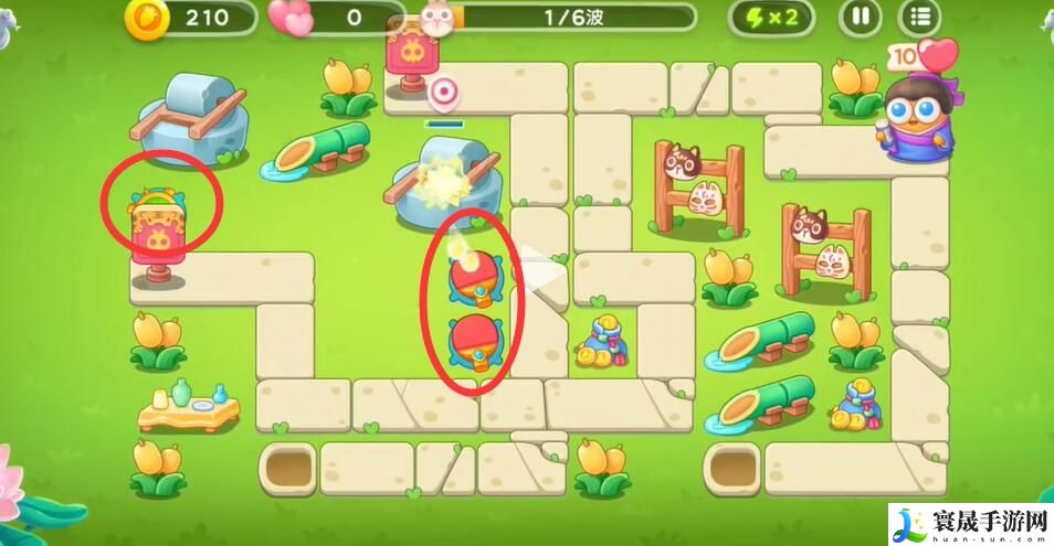 2、在第二波上面的出口也会出现敌人,在这里多放置几个满级乒乓球即可应对。