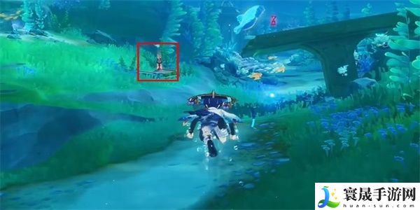 3、接着我们就根据指引,可以看到发条机关,朝这个位置游过去,解锁即可完成任务。