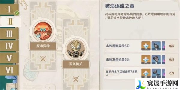 原神破浪逐流之章是博物通志第二关任务,在这一关中我们需要击败原海异种、发条机关和枫丹水下区域的敌人,接下来我们就来看看想要完成这些任务我们需要注意哪些地方,只要我们根据指引去打就能轻松完成挑战!